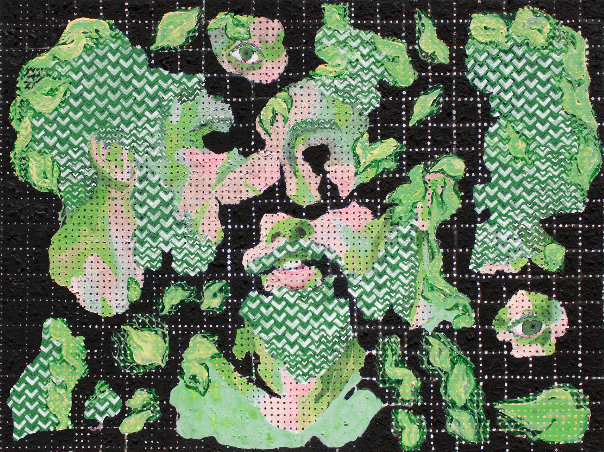 These portraits are painted from fragments of photogrammetric models that bleed into pieces of the subject’s garden.
